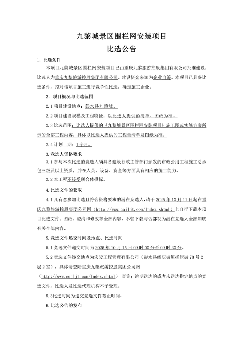 【招标文件】九黎城景区围栏网安装项目(1).pdf
