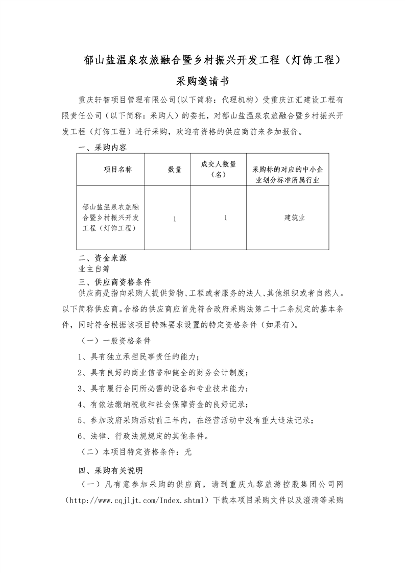 郁山盐温泉农旅融合暨乡村振兴开发工程(灯饰工程)采购邀请书